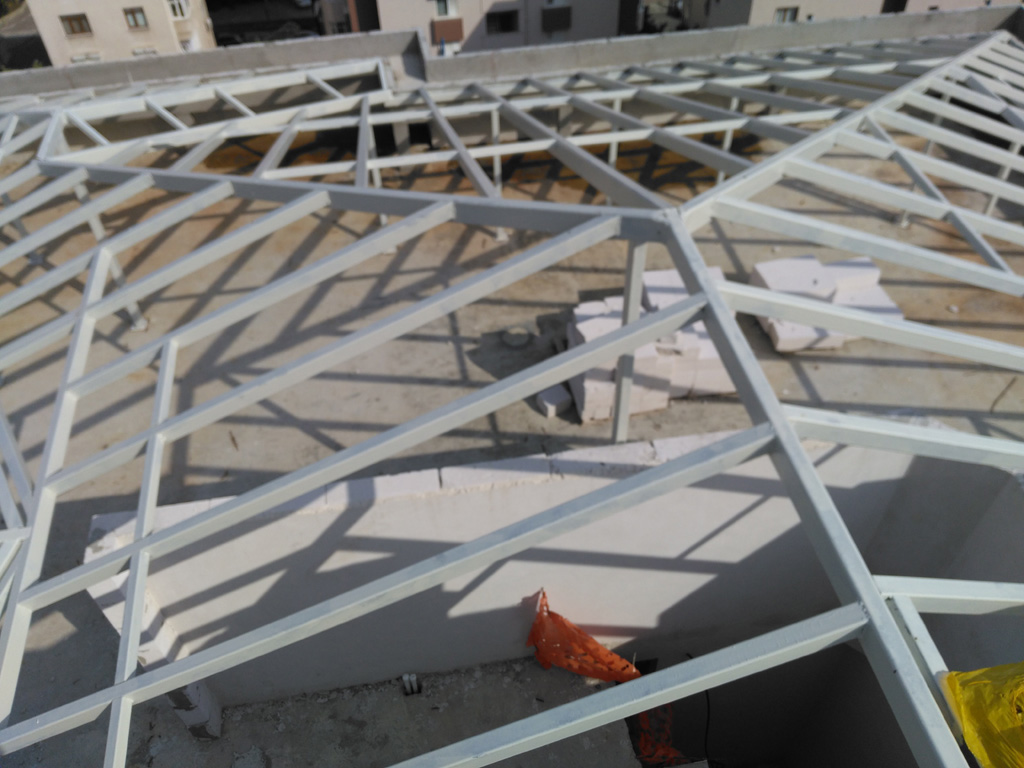 2) Çatı katı Çelik konstrüksiyon Karkas çalışması