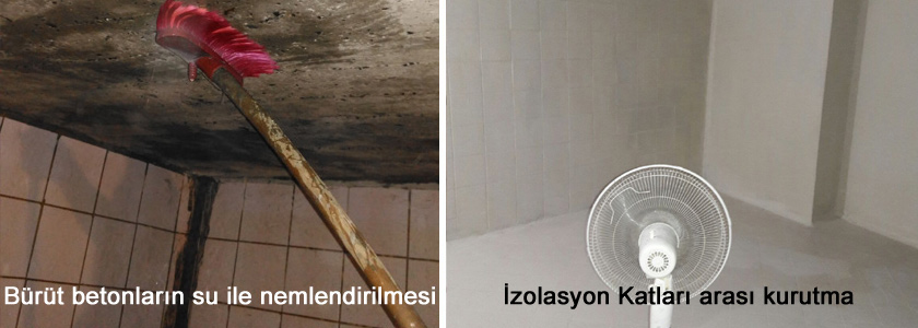 • İzolasyon öncesi tüm alanlar kazınır, çamur vb. atıklar sert fırçalar ile yıkanarak temizlenir.